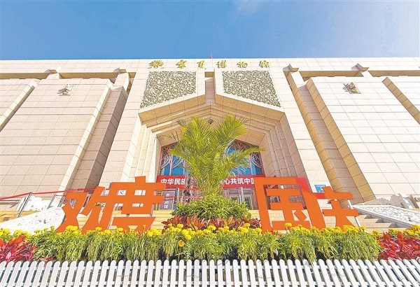 国庆、中秋“双节”之际,银川市的大街小巷、公园广场、商圈社区等洋溢着浓郁的节日氛围。图为宁夏博物馆前设置的“欢度国庆”主题花坛。 宁夏日报记者 马楠 王洋 摄
